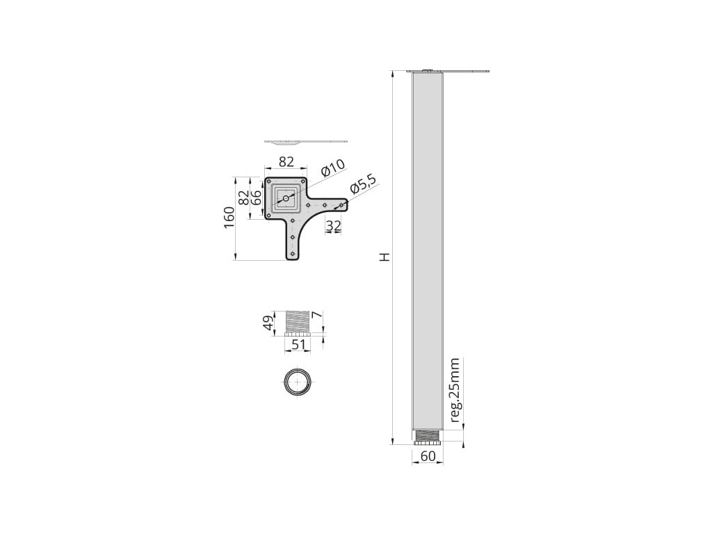 › NOHY,PODNOŽE, KOLIESKA › Stolové nohy › STOLOVÁ NOHA, 710/60/60, ŠTVORCOVÁ, LESKLÝ CHRÓM