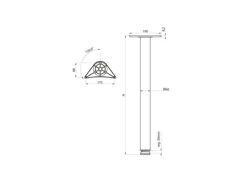 › NOHY,PODNOŽE, KOLIESKA › Stolové nohy › STOLOVÁ NOHA, 710/60, SATIN