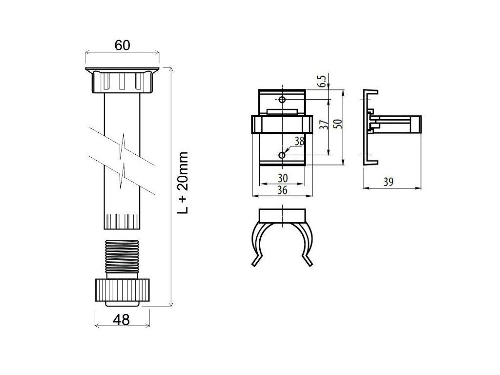 › NOHY,PODNOŽE, KOLIESKA › Nábytkové nožičky › NÁBYTKOVÁ NOHA PLASTOVÁ, ČIERNA, S KLIPOM, 150MM