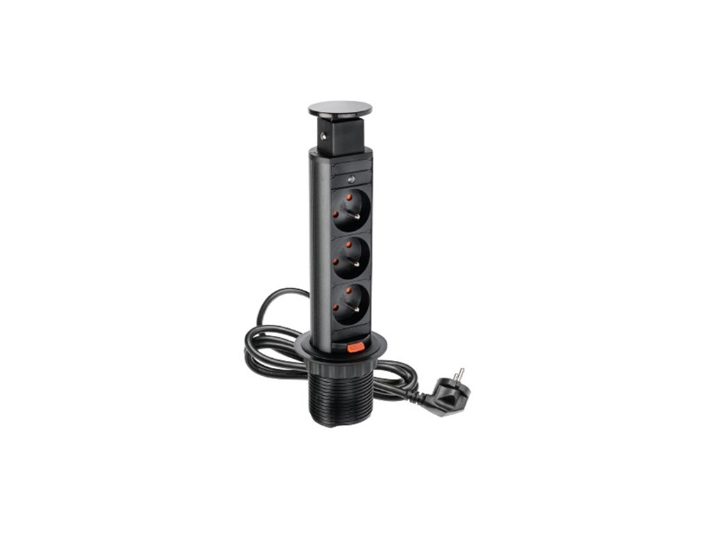 › NÁBYTKOVÉ KOVANIE › Elektrické zásuvky › VÝSUVNÁ ZÁSUVKA ČIERNA 3x220V