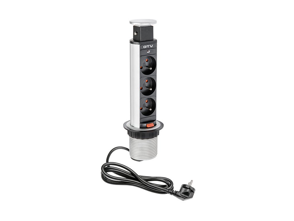› NÁBYTKOVÉ KOVANIE › Elektrické zásuvky › VÝSUVNÁ ZÁSUVKA ŠEDÁ 3x220V
