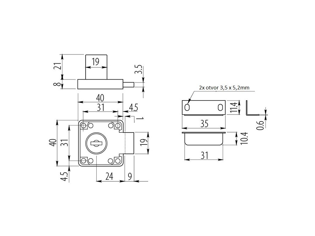 › NÁBYTKOVÉ KOVANIE › ZÁMOK LOCK SQUARE ORDINARY